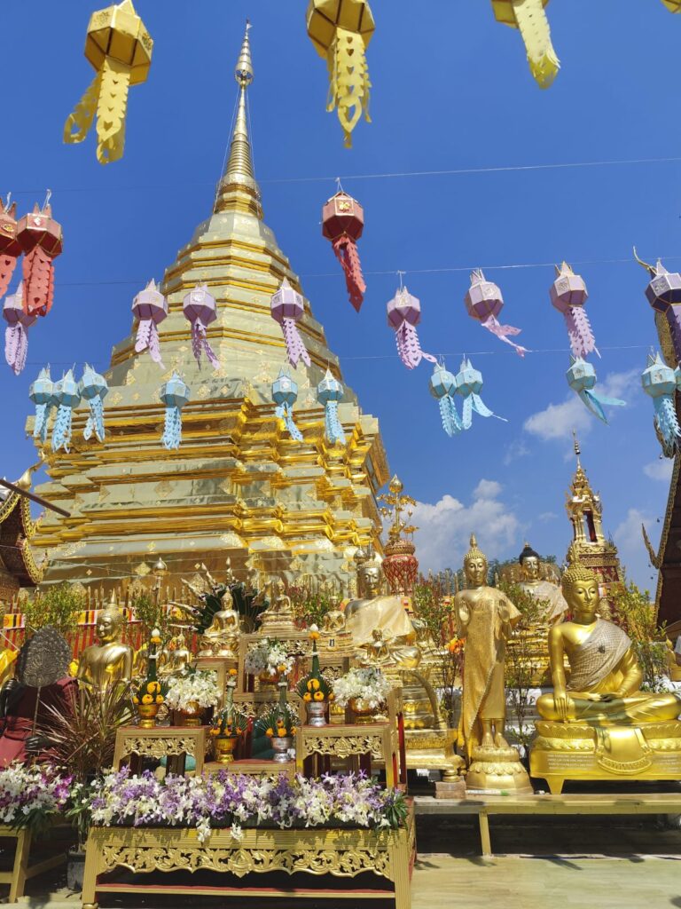 O templo mais emblemático de Chiang Mai está localizado no alto de uma montanha. O Wat Phra That Doi Suthep oferece uma vista panorâmica da cidade e é um dos templos budistas mais sagrados da Tailândia. Imperdível ao pôr do sol.